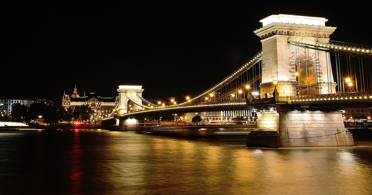 Já em Budapeste, o rio divide a cidade em duas partes – Buda e Peste – e proporciona uma vista noturna belíssima, especialmente a partir da Ponte das Correntes ou durante um cruzeiro iluminado.